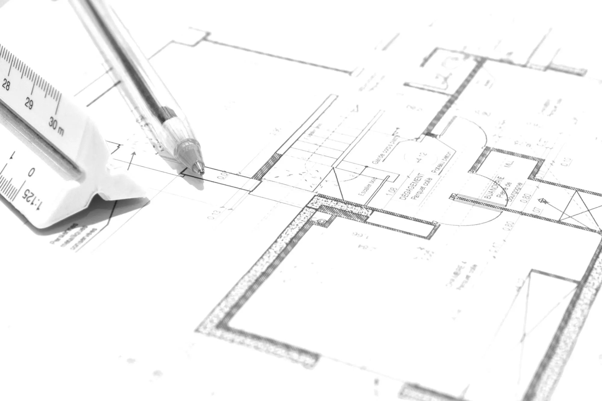 Tout d’abord, nous dressons des plans au 1/100e, de chaque étage.